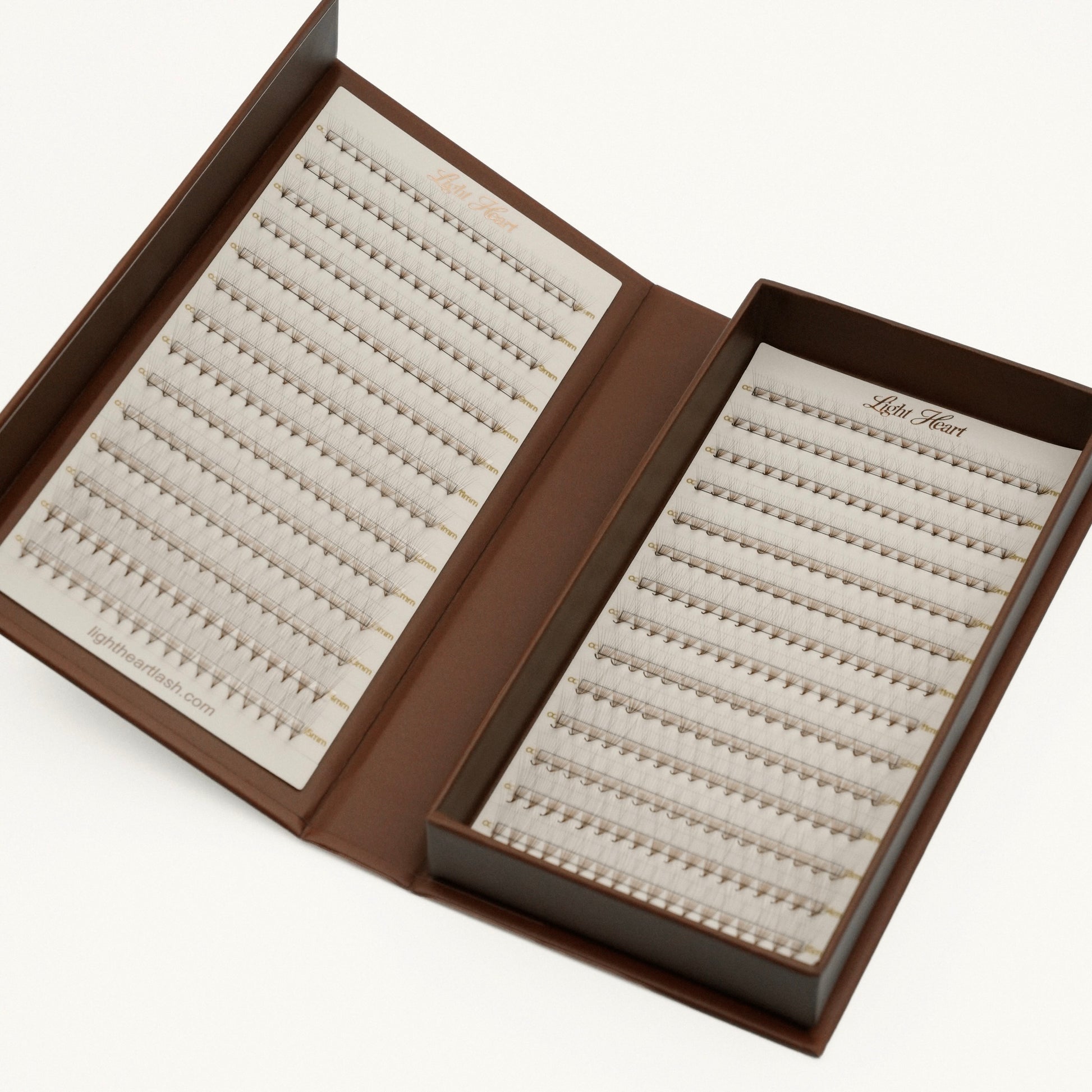 Made from our beloved, high quality “Everything Lash” fiber, these promades can blend seamlessly into your handmade sets. Enjoy the same matte finish and tapered tips as the trays you know and love— now made into perfect “done for you” 10D fans.